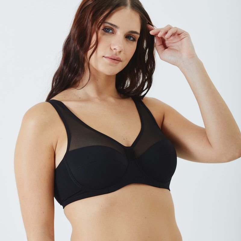 Corpiño con Aro Maidenform 0116, confeccionado en tricot pesado con elastano fibra LYCRA®, que ofrece un soporte firme, cómodo y de alta durabilidad. La copa superior en tul elastizado, con recorte en la taza, garantiza un mejor calce, mayor capacidad y un ajuste anatómico que realza la forma natural del busto.